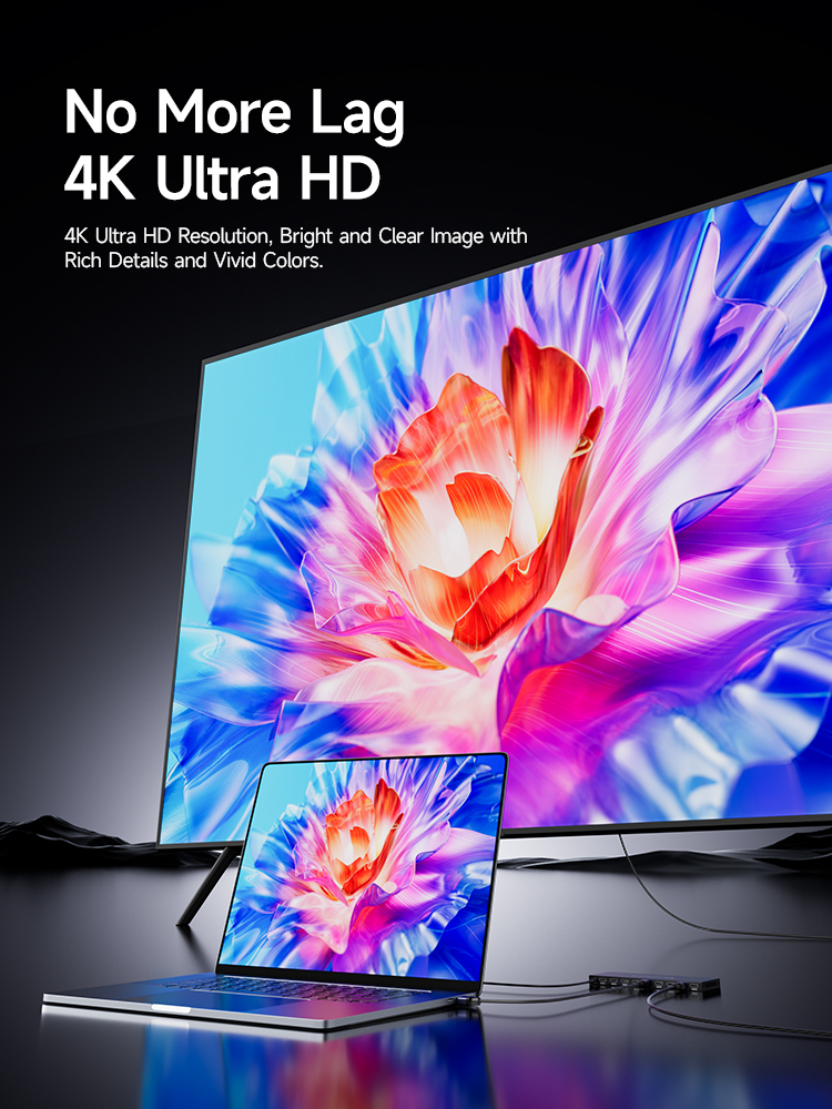 Áp dụng thiết kế vỏ hợp kim nhôm tích hợp, bề mặt áp dụng quy trình oxy hóa phun cát, với cảm ứng tinh tế, chắc chắn và bền, được trang bị chip điều khiển thông minh, truyền ổn định, bảo vệ tĩnh điện ESD, hỗ trợ đồng bộ hóa âm thanh và video và hỗ trợ 4K@30Hz / 1080p@60Hz、 HDCP/HDRDTS5/7.1、
