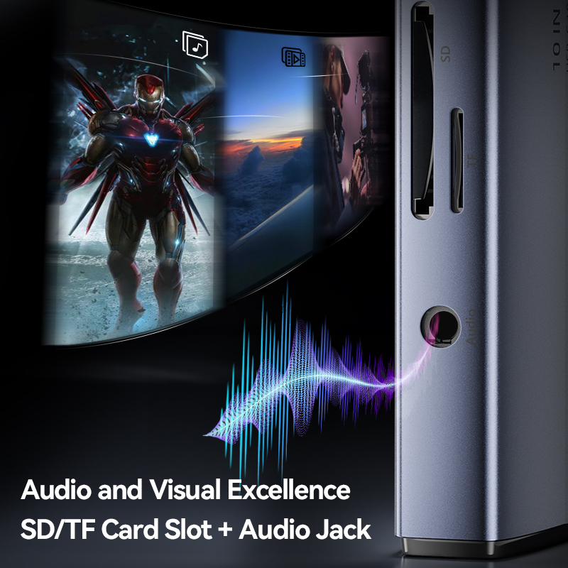 Được trang bị chip hiệu suất cao AG9311+VL817+RTL8153, bo mạch chủ có IC điều chỉnh điện áp tự động và bảo vệ quá dòng, không làm cháy bo mạch chủ, có độ ổn định mạnh, hỗ trợ nhiều giao diện để đồng thời xuất ra USB 3.0 truyền lên đến 5Gbps, độ phân giải 4K/60Hz, giao thức sạc nhanh PD công suất sạc 100W, cổng mạng gigabit, tương thích rộng rãi với các thiết bị giao diện Type-C như máy tính xách tay, máy tính bảng và điện thoại di động
