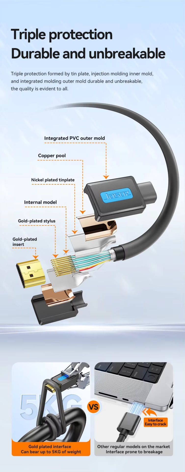 Hỗ trợ độ phân giải lên đến 8K@60Hz/4K/240Hz và tương thích ngược với các phiên bản khác, tổng băng thông 48Gbps,
