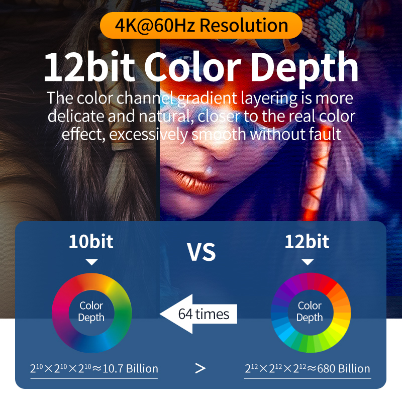 Hỗ trợ toàn bộ chiều dài 4:4:4Max 4K/60Hz18G băng thông.