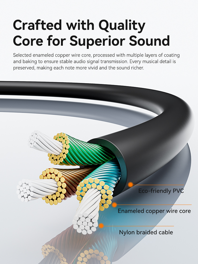 Sử dụng lõi đồng không oxy, phần mở rộng tạo ra chất lượng âm thanh rõ ràng mà không có tiếng ồn hiện tại, đầu ra âm thanh có độ trung thực cao và lớp vỏ PVC có độ đàn hồi cao. Nó hỗ trợ cuộc gọi thoại và điều khiển dây tai nghe. Nó phù hợp để mở rộng việc sử dụng giao diện 3,5 mm. Không hỗ trợ chức năng micrô.