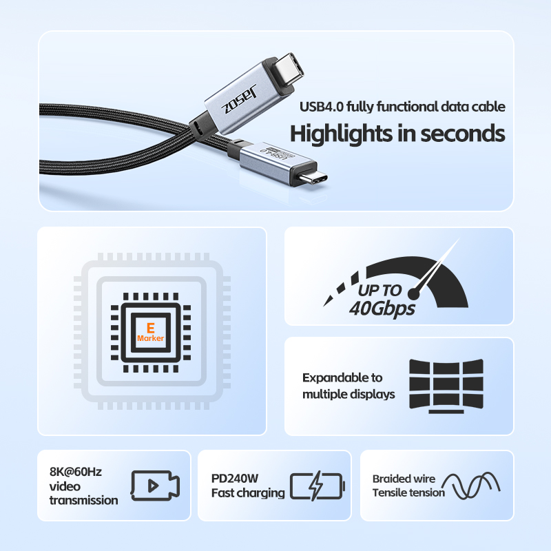 Hoạt động hai làn sử dụng cáp USB Type-C hiện có và hoạt động lên tới 80 Gbps trên cáp được chứng nhận 80 Gbps.